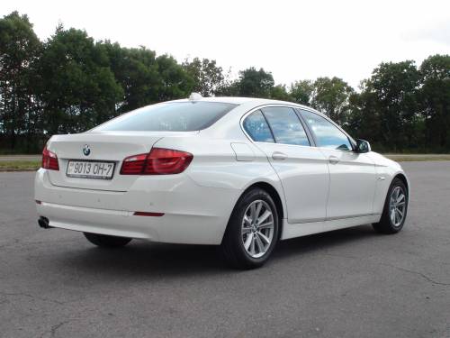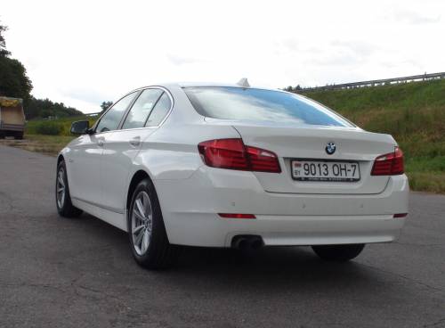 Выезжаю на загородную трассу Минск-Витебск и динамично набираю положенные 100 км/час. Двухтурбинный бензиновый мотор с аппетитом поедает топливо во время быстрого разгона. После обнуления на парковке борткомпьютер показывает пока нерадостные 16л/100км. Тем не менее, «пятерка» с «четырьмя цилиндрами показывает хорошую динамику разгона как и следовало ожидать от BMW. Лишь легкая заминка «автомата» при выборе нужной передачи на ускорении напоминает о меньшем чем у 3-литровых версий крутящем моменте. В 520-й, чтобы выдержать нужный драйв, приходится больше работать педалью газа. Закон равновесия никто не отменял: хочешь ехать быстро – плати больше. Либо за более мощный мотор – либо за повышенный расход топлива. А вот для неспешных водителей BMW этот 2-литровый бензиновый мотор подойдет в самый раз.