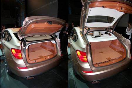 Как и предполагалось, BMW 5-Series GT – это нечто среднее между универсалом, хэтчбеком и внедорожником. Причем, что самое интересное, автомобиль получил такую же «двойную» дверь багажника, как и у Skoda Superb.