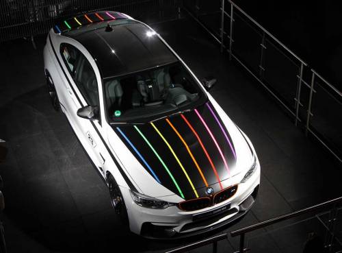 От обычных версий заряженного купе BMW M4 DTM Champion Edition отличается специальным окрасом в разноцветные полосы в стиле гоночного болида, а также номером 23 на бортах (номер машины Виттманна).