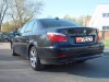 Интерьер «пятерки» БМВ выглядит строго, но дорого, а сочетание черной кожи и вставок из «крылатого» металла делают его еще более «холодным». Задние места седана дарят седокам достойный уровень комфорта, так что хозяину можно, в принципе, прибегать к помощи наемного шофера. Но вряд ли кто-то из владельцев этого БМВ так поступает…