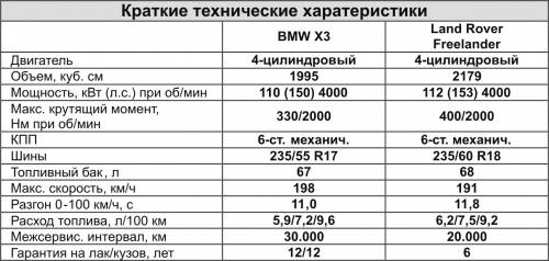 При детальном знакомстве с яркими представителями известных брэндов зачастую трудно одному из них отдать предпочтение. В нашем случае обе модели на гребне волны. С одной стороны – «ковбой» Land Rover Freelander, а с другой - изысканный и элегантный «господин» BMW X3.