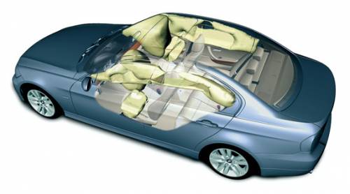 BMW 320d. При ДТП перед боковыми стеклами открываются воздушные подушки ITS, защищающие голову, а подача тока к электрическим частям автомобиля прекращается