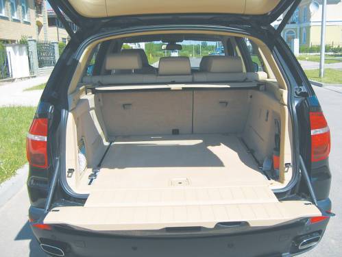 Несмотря на заявления компании о 7-местном салоне, Х5 рассчитан на пятерых взрослых, а в случае необходимости, за доплату, можно заказать пару дополнительных детских кресел. При этом производитель предупреждает, что перевозить «в багажнике» можно только людей ростом не выше 150 сантиметров. Если в семье подходящих «супостатов» нет, то, отказавшись от складных задних кресел, можно получить внушительную емкость под полом багажника. Кстати, в погоне за экономией места и массы разработчики Х5 отказались от запасного колеса – его заменяют не прокалываемые шины Run-on-Flat. Однако за подобную роскошь приходится расплачиваться деньгами – подобные покрышки в среднем обходятся на 15-20% дороже обычных, а также комфортом – более жесткие боковины шин исправно передают на кузов вибрации от мелких неровностей.