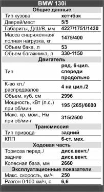 Вне всяких сомнений, самая быстрая “единичка” BMW оказалась тем средством передвижения, которому даже самые педантичные владельцы великодушно прощают мелкие недостатки – например, отсутствие просторных ниш и полочек. Искусство соблазнения 6-цилиндрового мотора здесь проявляется в полной мере. Звучание, раскрытие силы, злость, оборотистость дарят неизменное удовольствие. Благодаря всему этому 130i не оставил равнодушным ни одно сердце. И вместе с тем доказал, что он целиком и полностью оправдывает свои деньги. Потому что в движении эта невзрачная «единичка» превращается в настоящий спортивный автомобиль. Ведь к мотору прилагается точная коробка передач и хорошо сбалансированная управляемость заднеприводного BMW.
