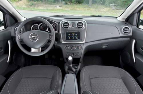Интерьер второго «Логана» получил множество новых деталей. В частности, переделке подверглась приборная панель, рулевое колесо, кресла, а также передняя консоль, центральной частью которой стал сенсорный дисплей. Он отвечает за работу радио и аудиосистемы, навигации и телефона.