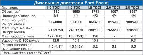 Концерн старается идти в ногу со временем и снижать выброс CO2. Все версии, оснащенные двигателем 1,6 TDCi, выбрасывают менее 120 граммов CO2 на километр. Специальная версия Focus ECOnetic (с двигателем 1,6 TDCi), благодаря модификациям, уменьшающим аэродинамическое сопротивление и механические потери, портит атмосферу всего лишь 114-ю граммами CO2 нa километр. Свой вклад в подобный показатель внесли такие важные элементы, как шасси, пониженное на 10 мм спереди и на 8 мм сзади, передний и задний спойлеры, заглушки некоторых отверстий для воздуха, а также шины с меньшим сопротивлением качению размером 195/65 R15.