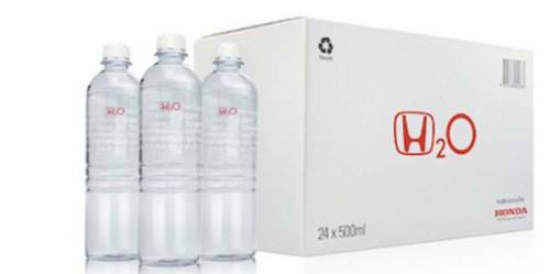 Как известно, естественным выхлопом водородомобилей является вода. Австралийское подразделение Honda представило марку питьевой воды H2O, где первая буква выполнена в виде фирменной эмблемы японской марки. Жидкость производится из водородных эмиссий модели FCX Clarity, работающей на топливных элементах.