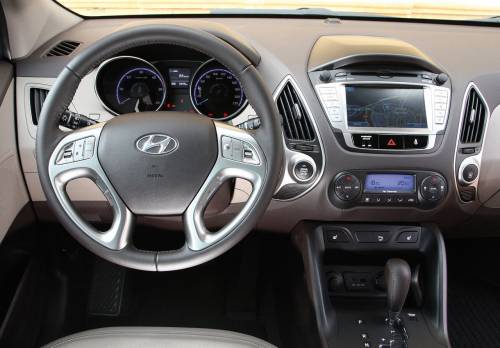 Салон преобразился полностью, хотя пластик по-прежнему жесткий. Дизайн передней панели и приборов современен, а сами приборы информативны. Появились и новые функции, недоступные для предыдущего Tucson. Самые значимые – бесключевой доступ с запуском мотора кнопкой, управление музыкальной системой и круиз-контролем на рулевом колесе, обогрев заднего сиденья и зоны стеклоочистителей, двухзонный климат-контроль, камера заднего вида, 6 подушек безопасности и активные подголовники. Часть из них – стандартное оборудование.