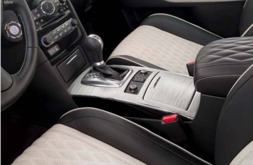 В салоне QX70 Limited появилась контрастная отделка из черной и бежевой кожи, а также декоративные панели из полированного алюминия.