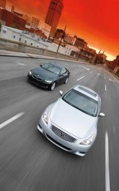 После теста обеих машин напрашивается вывод: Infiniti G37 не было бы, если бы не BMW 335i, и наоборот. Ведь все дело в том, что 2007 BMW 335i и 2008 Infiniti G37 предназначены для одного и того же типа водителей.