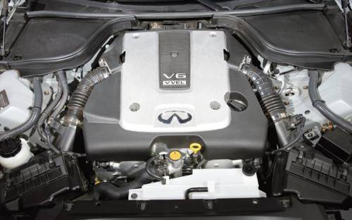Характер Infiniti G37 можно описать одновременно как «расслабленный», так и «бешеный». При мощности 330 л.с. при 7000 об/мин и 366 Нм крутящего момента при 5200 об/мин новый двигатель объемом 3,7 литра V6 сразу выдает мощный подхват, но предпочитает работать на средних оборотах. Переключение 6-ступенчатой «механики» тоже не такое приятное. Увесистое сцепление включается не так мягко, будто говорит: «заканчивай с нежностями». Процесс переключения не такой решительный, как будто механическая трансмиссия нуждается в осторожном переваривании мощности силового агрегата.
