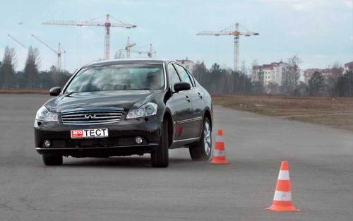 Особенно интересно наблюдать за «Легендой». На ее щитке приборов стоит индикатор, который постоянно показывает, как распределяется крутящий момент. Хорошо видно, что при круговом движении по часовой стрелке весь момент задних колес «висит» на заднем левом колесе, которое «вкручивает» машину, не позволяя ей сойти с траектории. Но стоит задку потерять сцепление в такой ситуации – и передние колеса попросту не успевают подключиться, поэтому срыв задней оси здесь более вероятен, чем в Infiniti. Этот в штатных режимах заднеприводный автомобиль легко отдает часть момента вперед. В результате с каждым кругом М35х все больше распрямляет траекторию, двигаясь по спирали. Отсюда его безопасное поведение и цепкость при резких маневрах. Впрочем, и «обувь» с широкой тонкой «подошвой» размерностью 245/45 R18 – то, что надо.