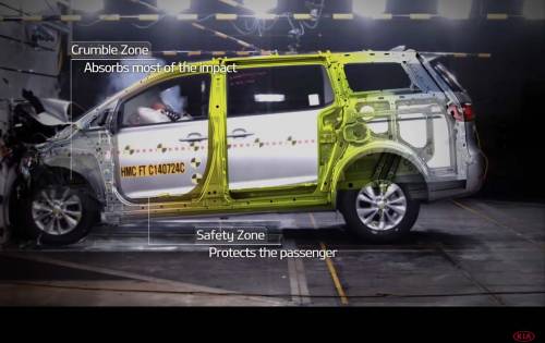 На самом деле новый вид испытания автомобиля является рекламным роликом, призванным продемонстрировать высокий уровень защиты водителя и пассажиров KIA Grand Carnival при фронтальном столкновении со 100-процентным перекрытием кузова. Падение с вышеуказанной высоты имитирует обычный горизонтальный краш-тест на скорости 56 км/ч, который указанная модель проходит без проблем.