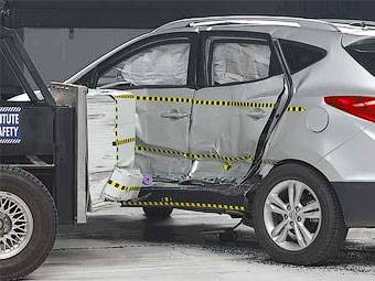 Помимо этого, IIHS проводит фронтальный краш-тест, который выполняется на 65 километров в час, а также боковой удар, имитирующий столкновение с внедорожником или пикапом, на 50 километрах в час. При ударе сзади в неподвижный автомобиль врезается специальный барьер, двигающийся со скоростью 32 километра в час.