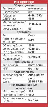 С первых же оборотов двигатель «Спортаджа» производит впечатление достаточно бойкого и весьма отзывчивого на педаль газа. Хотя на самом деле разгон до 100 км/ч занимает больше 11 секунд. От 166-сильного мотора ожидаешь лучшей динамики. Крутящий момент составляет почти две сотни ньютонометров, поэтому пару секунд с результата можно было бы снять. Зато агрегат не досаждает шумом, пока не начинаешь крутить его выше 4000 об/мин. Тогда появляется ненавязчивый монотонный звук, к которому после 120 км/ч начинает постепенно добавляться аэродинамический шум. По большому счету, для городского кроссовера это простительно.