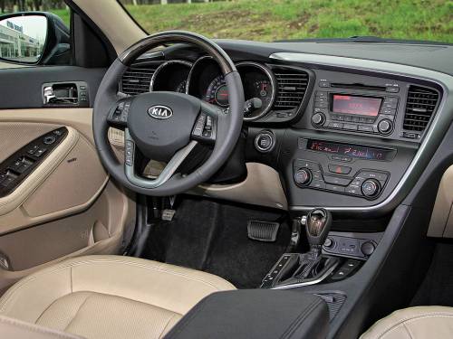 Яркая внешность пробуждает любопытство по отношению к салону. Интересно, а там мы что-нибудь новенькое встретим? Шоком, конечно, было бы, если бы перед нами оказалось типично азиатское произведение. Но нет, в Optima интерьер соответствует внешности и, что главное, он какой-то уникальный, в нем присутствует индивидуальность. Если честно, то, к примеру, в Hyundai интерьеры мне пока не нравятся, в них еще сидят какие-то слизанные с японских аналогов формы, линии и даже буковки, хотя внешняя архитектура ой какая броская. Но Kia сегодня бьет всех своих конкурентов. И, кстати, не только красотой. Optima по функционалу и опциям достает даже современного «европейца».