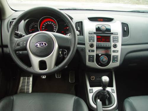 Находиться за рулем Kia приятно. Глаз радуют передняя панель среднеевропейского дизайна, которая хоть и не отпечатывается в памяти авангардными решениями, но выглядит вполне мило и дружелюбно: ладный и приятный на ощупь спортивный руль и симпатичные приборы с алым ореолом вокруг спидометра. Пластик здесь попроще, чем в салоне Cee’d, а вот эргономика ничем не хуже: кресла, обитые в тестируемой нами версии кожей, не жесткие, но в поворотах держат неплохо; рулевая колонка регулируется в двух направлениях, позволяя подобрать оптимальное положение; приборы вполне читаемы и приятны на глаз. Конечно, в салоне Cerato еще нет европейского лоска, однако на примере этого автомобиля легко заметить, как далеко корейцы в дизайне и качестве изготовления шагнули за последние несколько лет.