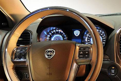 Как и в случае с внешностью автомобиля, дизайн салона большого седана под брендами Lancia и Chrysler отличается деталями – другими материалами отделки, включая более светлую кожу и иные деревянные вставки. Кроме того, обе машины сохранили аналоговые часы в верхней части центральной консоли и ярко-голубую подсветку приборов.