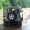 Как только мы съезжаем с асфальта, у Defender будто открывается второе дыхание. Он без труда проезжает довольно сложные участки в лесу. Сидя за рулем этого автомобиля, можно не бояться застрять в болоте или "повиснуть" на каком-либо ухабе. Поначалу даже не верится, что легковой автомобиль способен на такие маневры. Стоит нам обнаружить в лесу гигантскую грязевую лужу, как мы без раздумья "атакуем" ее, даже не задумываясь о глубине. Ровно посредине этого болотца несколько мгновений Defender буксует. Но, включив пониженную передачу, мы запросто выезжаем. Ходов подвески вполне хватает для преодоления крупных канав. Вот только после нескольких часов езды по лесу заводской чистоты под капотом как не бывало. Недоработкой производителя можно назвать отсутствие защиты двигателя снизу. Это ни на что не влияет, однако не очень приятно видеть внешние детали двигателя, облепленные болотной грязью.