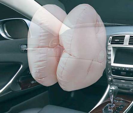 На “джиэс” устанавливают разработанную инженерами фирмы Toyota двухкамерную подушку безопасности SRS Twin-chamber Airbag. Она состоит из двух половинок, в углубление между которыми водитель утыкается головой в случае аварии. Идея в том, что площадь контакта лица с подушкой больше, а, значит, нагрузка и риск получения травм — ниже. Более того, «проваливаясь» головой между двумя половинками подушки, водитель упирается в нее плечами, и распределение энергии удара становится более эффективным.