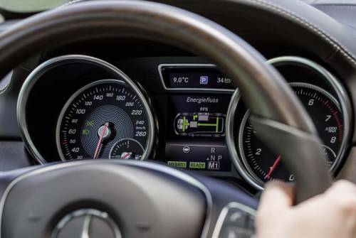 Наконец, самое главное нововведение - гибридная модификация GLE 500e 4MATIC. Ее силовая установка состоит из трехлитрового твинтурбо мотора V6 мощностью 333 л.с. и электродвигателя в 116 л.с. Блок литий-ионных батарей емкостью 8,8 киловатт-часа обеспечивает пробег на электричестве до 30 километров со скоростью не более 130 км/ч. Средний расход топлива - 3,3 литра на 100 километров пути. Водитель может выбирать из четырех режимов работы силовой установки.