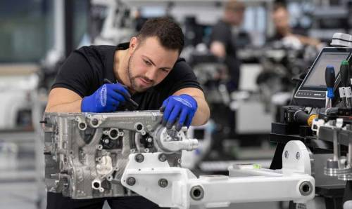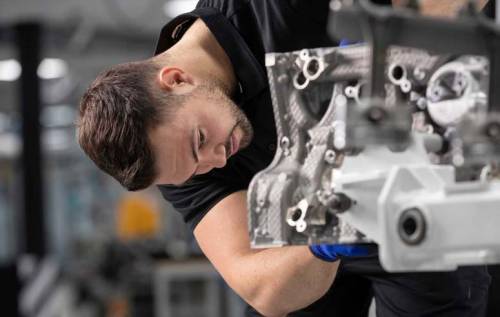 Новый двигатель собран вручную на моторном заводе AMG в Аффальтербахе, где была смонтирована новая производственная линия, воплощающая достижения так называемой «индустрии 4.0». Производство организовано по знаменитому принципу компании «один мастер, один двигатель».