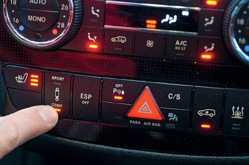 Еще одна особенность R-класса – белое лакокрасочное покрытие, которое предъявляет высокие требования к качеству автоматических моек и безжалостно вскрывает их недостатки. На изгибах передней части автомобиля нередко остаются серые подтеки грязи, углубления фартуков бамперов тоже не всегда чистые. Несмотря на белый цвет кузова, салон прилично нагревается, так что серийному климат-контролю всегда есть работа. К счастью, спроектирован он должным образом.