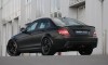 BRABUS тем самым дает жизнь еще одному рекордсмену, ведь теперь ВULLIT BLACK ARROW - самый быстрый в мире седан. На этом троне он сменит Е-класс в кузове W210, существенно улучшив показатель максимальной скорости до 365,7 км/ч. Несмотря на подобные возможности, представить такое чудо на дороге несложно. Вот только рассматривать его придется исключительно в моменты вынужденного простоя. Его внешность, кстати, вряд ли подскажет вам, что при недостатке должной выдержки, вы можете попортить обивку пассажирского сидения. Единственное, что сразу выдает в нем непростой автомобиль, так это матовый окрас – удел супер автомобилей последних лет. Мода, на самом деле, достаточно сомнительная. Ведь живьем эта самая матовость делает автомобиль каким-то вечно грязным, хотя у каждого наверняка на этот счет сложилось свое собственное мнение. Из отличительных особенностей в наборе обновлений можно выделить исключительно традиционные решения – ничего революционного во внешности тут нет. Большие воздухозаборники в переднем бампере, пара вентиляционных отверстий на капоте, черные диски фирменного дизайна и отсутствие отличного большого значка Mercedes-Benz на радиаторной решетке – спереди ничего интересного. Сбоку можно выделить жабры на передних крыльях, которые явно не сделаны ради красоты. А также 19-дюймовые колесные диски с разноширокими покрышками YOKOHAMA или PIRELLI размерностью 265/30 и 285/30. Сзади же «черной стреле» достался в наследство довольно спорный дизайн С-класса, который решили скрасить антикрылом, жабрами для отвода горячего воздуха, а также потерявшимся на темном фоне диффузором, четырьмя патрубками выхлопной системы и круглой противотуманкой посередине. Получилось неплохо, но не более того. Чего нельзя сказать насчет внутреннего убранства, ведь там все намного лучше, чем неплохо – там все почти шикарно. Выезжающий из торпедо экран очень уютно чувствует себя в окружении карбона, кожи, алькантары и аккуратной белой прострочки. Также комфортно наверняка будет ощущать себя и водитель, окруженный не только надежной поддержкой гоночных сидений, но и первоклассными материалами, а также закамуфлированным вниманием высоких технологий. Так что литера «В» на рычаге переключения коробки передач вполне могла бы расшифровываться как «Best». Упомянутые технологии, кстати, действительно высоки. Под капотом у этого авто стоит двигатель, одним своим видом вызывающий уважение. Если на старте был лишь 5,5 литровый агрегат, то после доработок от BRABUS на свет появился могучий SV12 S BITURBO рабочим объемом 6.3 литра, который без сомнений может носить гордое звание реактора. Он легко рождает на свет 750 л.с. при 5100 об/мин. Такой мощностью можно свести с ума любого счастливчика, севшего за руль. Более того, в его распоряжении мог бы быть не менее сумасшедший крутящий момент в 1320 Нм, доступный после отметки в 2100 об/мин. Вот только электроника превращает его в 1120 Нм, но это явно не повод для расстройства. Так что до 100 км/ч летим за 3.9 секунды, до 200 км/ч за 10.49, а дальше лишь потолок скорости в 365.7 км/ч и это при снаряженной массе в 1850 кг. Так что стрела, ракета, безумный демон – называйте его как хотите. В любом случае, пока это самый быстрый в мире седан. И он, наверняка, останется таким вплоть до появления следующего творения от ателье BRABUS.