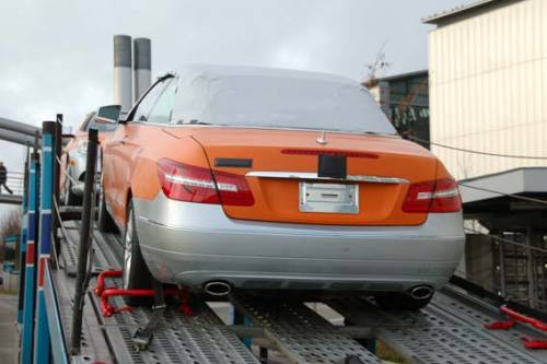 Немецкий концерн Mercedes-Benz, забыв о главном правиле маскировки, согласно которому камуфляж не должен содержать ярких тонов, позволил папарацци довольно легко обнаружить серийную версию кабриолета Mercedes-Benz E-класса во время транспортировки модели на автотрейлере.