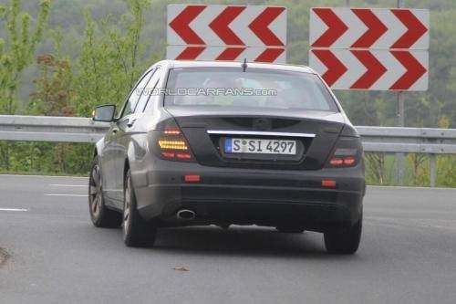 Рестайлинговый Mercedes-Benz C-класса, частично прикрытый камуфляжем, обзавелся новыми бамперами, LED-фарами дневного света, светодиодной задней оптикой; небольшим изменениям подверглась радиаторная решетка. В салоне модернизация затронет рулевое колесо и архитектуру центральной консоли.