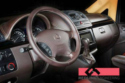 Российская тюнинговая студия REDLINE Engineering, которая специализируется на эксклюзивной доводке салонов автомобилей, предложила очередной проект на базе люксового минивэна Mercedes-Benz Viano.