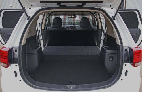Убрав второй ряд сидений, в задней части кроссовера оборудовали грузовую площадку длиной 1650 мм, шириной 1000 мм и высотой 800 мм, отгороженную от водительского и пассажирского сидений стальной сеткой.
