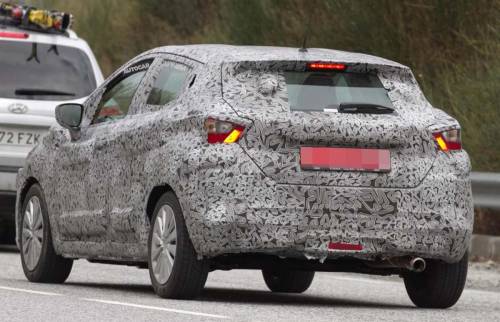 Передняя часть кузова рассечена V-образной решёткой радиатора и дополнена более крупными фарами с интегрированными светодиодными ходовыми огнями. Такие решения японцы уже показывали в марте 2015 года на примере концепт-кара Sway, который на 23 см длиннее и на 11 мм шире нынешней Micra, а также имеет увеличенную на 12 см колёсную базу. Сфотографировать интерьер новинки автопапарацци пока не удалось, хотя ранее в компании пообещали применить в отделке салона более качественные материалы.