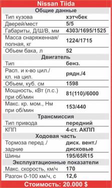 1,6-литровый двигатель, особенно в тандеме с «автоматом», в процессе разгона быстро достигает высоких оборотов, сохраняя невозмутимое спокойствие в салоне. Лучшей динамики можно достичь разве что только с механической КПП или с другим двигателем – 1,8-литровым. Но во время тестовой поездки 500 километров в различных условиях движения версия с «автоматом» нам понравилась. На загородном шоссе Тиида показала умеренный «аппетит» в пределах 6-7 литров 92-го бензина на «сотню». В городе «аппетит» возрос до 10 л/100 км при энергичной езде в потоке.