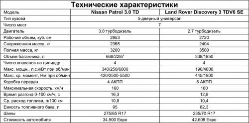 Nissan Patrol и Land Rover Discovery 3 – не рядовые джипы, а продолжатели настоящих внедорожных легенд, овеянных славой «Camel Trophy» и «Дакара». Однако воспринимать их лишь как покорителей бездорожья было бы непростительной ошибкой: и новый «Дискавери», и обновленный «Патрол» приятно удивляют резвостью характера и отменным поведением на асфальте. А солидный внешний вид, высокий уровень комфорта в салоне и широчайшие грузопассажирские возможности обеих машин делают их едва ли не идеальными средствами передвижения.