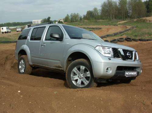 Джип есть джип, и на обычной асфальтированной дороге ничего особенного от него ожидать не приходится. Размеренно, словно король городских джунглей, Pathfinder не спеша движется по дороге. Однако если надо, он может рвануть, да так, что мало не покажется: уж 174 лошадиные силы под капотом и крутящий момент в 403 Нм этому поспособствуют. Пятиступенчатый «автомат» достаточно неплох, работает тихо, плавно и, самое главное, в паре с мотором, от чего не случается резких толчков и ударов. Заезжаем на «стиральную доску», дабы проверить комфорт подвески. Как и положено настоящему джипу, Pathfinder имеет рамную конструкцию, подвеска независимая всех четырех колес. Машина идет достаточно уверенно, жестко, но в то же время мягче, чем, скажем, Patrol, у которого вместо приводов установлены мосты, а оттого и, соответственно, зависимая подвеска. Следующим испытанием стала мотокроссовая трасса с рыхлым песком и горками. И тут Pathfinder ничем особо не удивил – в очередной раз достойно выполнив функции внедорожника: легко забрался на гору и не застрял в рыхлом грунте, оставленном мотоциклами.