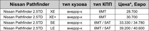 Краткая техническая характеристика Nissan Pathfinder 2.5 СDI SE