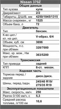Тормозная производительность у 370Z просто великолепна. Автомобилю потребовалось всего 30,3 метра тормозного пути, чтобы полностью остановиться со скорости в 96 км/ч. Само собой, для лучшей тяги и устойчивости при прохождении поворотов японцы применили дифференциал ограниченного скольжения. Все атрибуты спортивного автомобиля в новом Nissan 370Z явно есть. Соответственно, есть и те, кто захочет управлять этим настоящим спортивно-дорожным автомобилем. Возможна и любовь с первого взгляда, когда впервые посмотришь на линии кузова «зэтки». А почему бы и нет. Ведь только по-настоящему хороший автомобиль может подарить яркие эмоции.