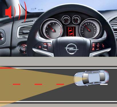 Расположенная между ветровым стеклом и салонным зеркалом заднего вида система Opel Eye выполняет две функции. Во-первых, предупреждает водителя сигналом зуммера и миганием светового индикатора на панели приборов о непреднамеренном сходе с полосы движения, тем самым предотвращая возникновение опасных ситуаций, к которым, например, можно отнести засыпание за рулем (Lane Departure Warning). Во-вторых, считывает дорожные знаки и выводит соответствующий символ в центр панели приборов (Traffic Sign Recognition).