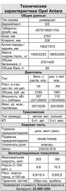 К сожалению, в ходе теста нам не предоставили базовую версию Antara с 2,4-литровым 140-сильным бензиновым двигателем. Ведь именно она, скорее всего, станет самой популярной в Беларуси. Непонятно также, почему опелевцы не намерены ставить на нее «автомат» – ведь у большинства конкурентов подобные моторы ими оборудуются. Вопрос цены на Antara тоже пока остается открытым – в Европе базовая версия стоит от 26.850 евро, что вполне соизмеримо с ценой на японских «старожилов» данного сегмента рынка – Honda CR-V, Toyota RAV-4 и Suzuki Grand Vitara.
