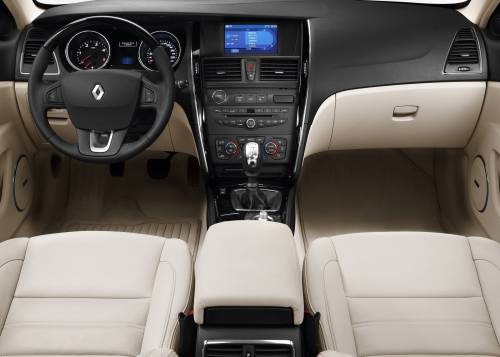 Внутри автомобиль более роскошен, чем Renault Laguna. Массивная центральная консоль выполнена в немецком стиле: большие кнопки, приятные на ощупь материалы. В топовой версии Latitude сможет похвастаться деревянными вставками на передней панели, кожаной отделкой и дорогим пластиком. Главное место занимает большой ЖК-дисплей.