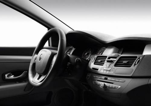Салон внутри чем-то напоминает летающую тарелку. Дизайн торпедо акцентирован к центру, на органах управления климат-контролем и музыкой, но панель приборов, конечно, не торчит прямо посередине торпедо. От базового хэтчбека Renault Laguna третьего поколения купе достался достаточно странный руль, чем-то напоминающий штурвал. Может, именно такой он у настоящих инопланетных летающих объектов. Огромное количество пустого пространства под центральной консолью немного смущает, но в целом смотрится достаточно оригинально. Чередование темного пластика с алюминиевыми вставками – очень стильно, и одновременно спортивно.