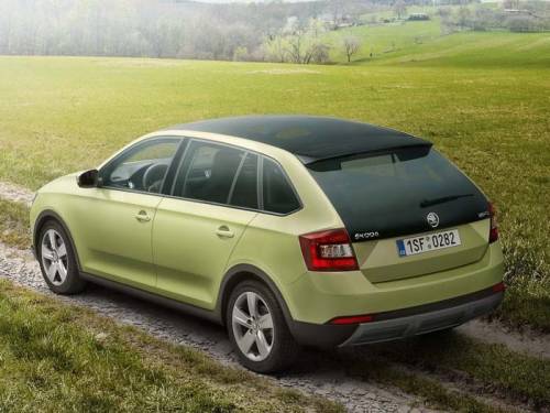Об увеличенном клиренсе пресс-релиз не сообщает. Скорее всего, по сравнению с обычной версией он не изменился. Зато появились пластиковые накладки, другие бамперы и оригинальные диски диаметром 16 и 17 дюймов. Также в списке отличий Rapid SсoutLine - специальная окраска кузова фисташкового цвета и серебристые корпуса зеркал заднего вида.