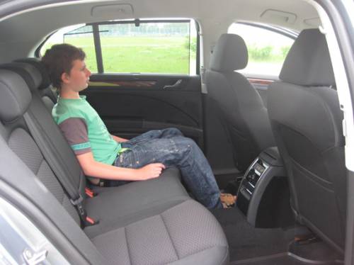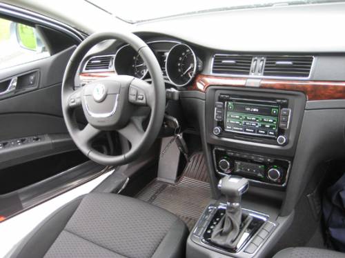 Внутри Skoda Superb оказалась еще лучше, чем снаружи. Просторный салон спереди дополняется небывалым пространством для задних пассажиров. Нечто подобное есть в “лонговых” версиях представительских Lexus или Mercedes S-класса. Удивительно, но сидеть сзади закинув нога за ногу в Superb можно без проблем. Качество отделки на высоте, все детали салона подогнаны с точностью. Тестируемый автомобиль был с тканевым салоном, но это нисколько не уменьшало достоинств автомобиля и его статус. По сравнению с теми же японскими конкурентами, чешский автомобиль отличается практически немецким качеством и надежностью подгонки деталей.
