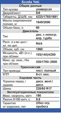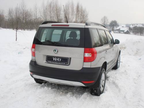 Подвеска – не самая мягкая. Ее позаимствовали у Octavia, но увеличили до 18 см дорожный просвет и оснастили более мощным стабилизатором поперечной устойчивости. За счет этого даже при немалой высоте кузова Yeti лишен излишней раскачки. Однако ходы подвески невелики, и рассчитывать на покорение больших буераков не стоит. Зато трясет гораздо меньше, чем того ожидаешь от такой короткобазной машинки. Конструкция полного привода здесь стандартная для Skoda – муфта Haldex. На ровном покрытии почти весь момент приходится на переднюю ось. На расхлябанной трассе до 90% момента может передаваться на задние колеса. Автомобиль наделили «умной» подвеской, которая обеспечивает идеальное распределение крутящего момента на все четыре колеса во время движения. Кроме того, для езды по бездорожью «Йети» может быть оборудован кнопкой «Off-road», расположенной в нижней части приборной панели, при ее нажатии автомобиль сам подстраивает все свои системы под внешние условия. К примеру, включаются специальные настройки антиблокировочной и антипробуксовочной систем, адаптированные для езды по бездорожью. Автомобиль при этом становится намного более чутким к нажатию педали газа, позволяя водителю четко и уверенно контролировать ситуацию (к сожалению, на тестируемой машине такая кнопка отсутствовала).