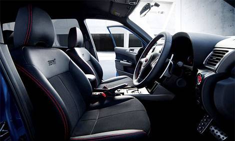 Среди других изменений – особый обвес кузова в стиле Impreza STi, спортивные сиденья с логотипом STi и руль, а также алюминиевые накладки на педали и красная кнопка запуска двигателя в салоне.