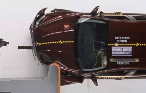 Фронтальный краш-тест с 25-процентным перекрытием. На фото Ford Fusion — заокеанский брат-близнец нового поколения Mondeo.