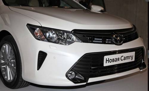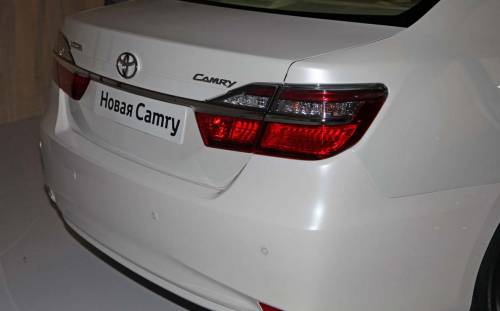 Новенькая Toyota Camry представлена на Московскои автосалоне достаточно обновленной - это касается и мотора и внешности автомобиля. Снаружи новинку можно узнать по измененному оформлению передней части, где появился новый передний бампер, решетка радиатора, а также передняя оптика со светодиодными ходовыми огнями. Сзади также появился новый бампер и фонари, которые отныне выполнены по светодиодной технологии. Наконец, последним новшеством экстерьера являются 17-дюймовые легкосплавные диски оригинального дизайна.