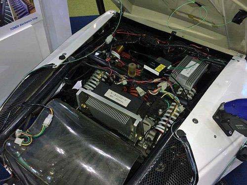 Электромотор переменного тока расположен за креслами и приводит в движение единственное заднее колесо. Его мощность составляет всего 11,7 кВт (16 л. с.), но легкому электрокару этого достаточно, чтобы развивать 100 км/ч.