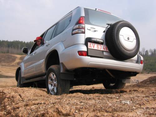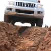 И вот мы в Стайках - в том самом карьере "Ленинский", где проводятся несколько этапов по джип-триалу, а ранее - и по трак-триалу. Для начала проехали немного по глубокому песку. С постоянным полным приводом и таким тяговитым двигателем для "120-го" это не проблема. Там, где из-за избытка тяги передние или задние колеса слегка буксовали, межосевой дифференциал Torsen автоматически перераспределял крутящий момент на другую ось, не вынуждая при этом водителя останавливать автомобиль и "маневрировать" рычагом раздаточной коробки. Для обычных поездок по грунтовым дорогам или даже по пляжу вполне хватает "стандартного" режима работы трансмиссии.